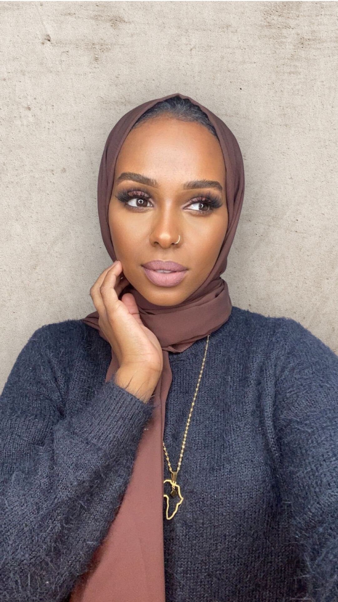 This is our premium Crepe hijab in Chocolate brown. Our soft hijabs are made in the emirates and are more textured and luxurious than your usual chiffon hijab.